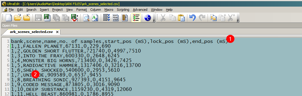 - The scene names do NOT need to be enclosed by double quotes. Just make sure they don't contain any commas.