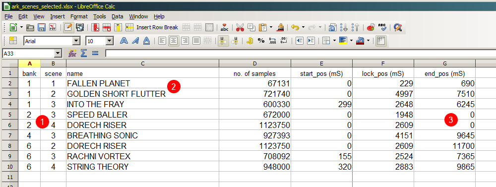 - The banks/scenes should be listed in ascending order, even if they are not continous.